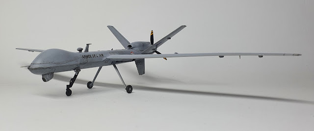 Que dire du kit, beaucoup de lignes de moulage à faire disparaitre, un bon point c'est le nombre nation que l'on pourra représenter, bien évidement j'ai choisi de faire ce drone français de l'Escadron de Drone 1/33 Belfort.